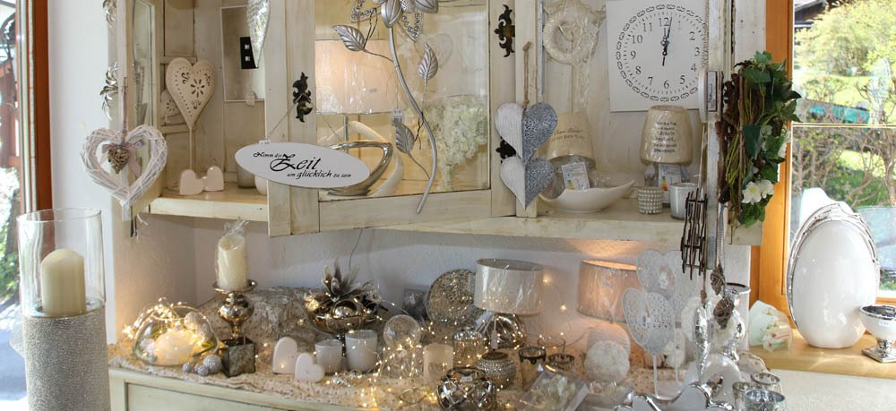 Gestecken, individuellen Arrangements, Kerzen, Glaskunst, Laternen, Wohnaccessoires und einzelnen Blumen.